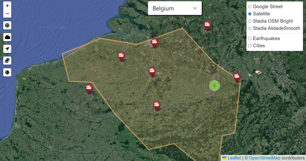 data to highlight the country borders. Inside the border I used marker cluster to for cities and earthquakes.